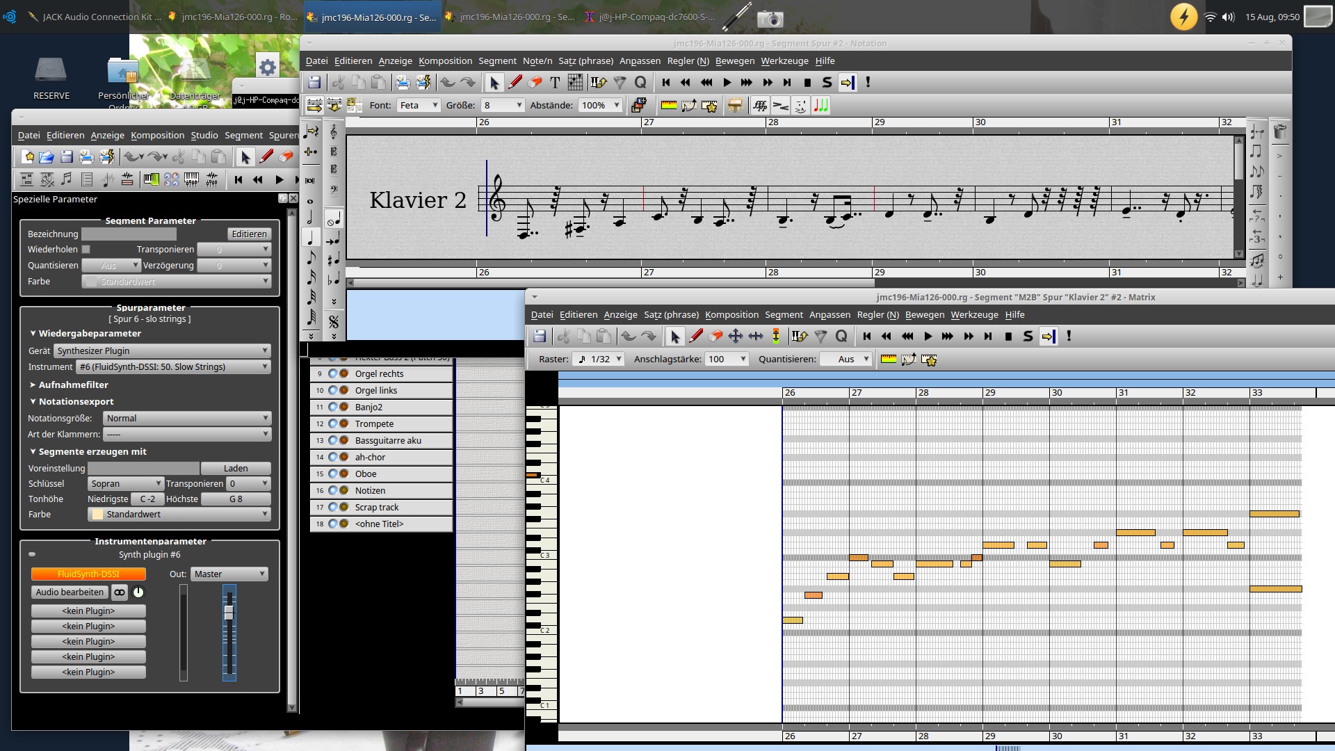 Klavier, Klavier 2, Schlagzeug, slo strings, Akkordeon, Hexter Bass, Acc Bass, Orgel rechts, Orgel links, Banjo, ah-Chor