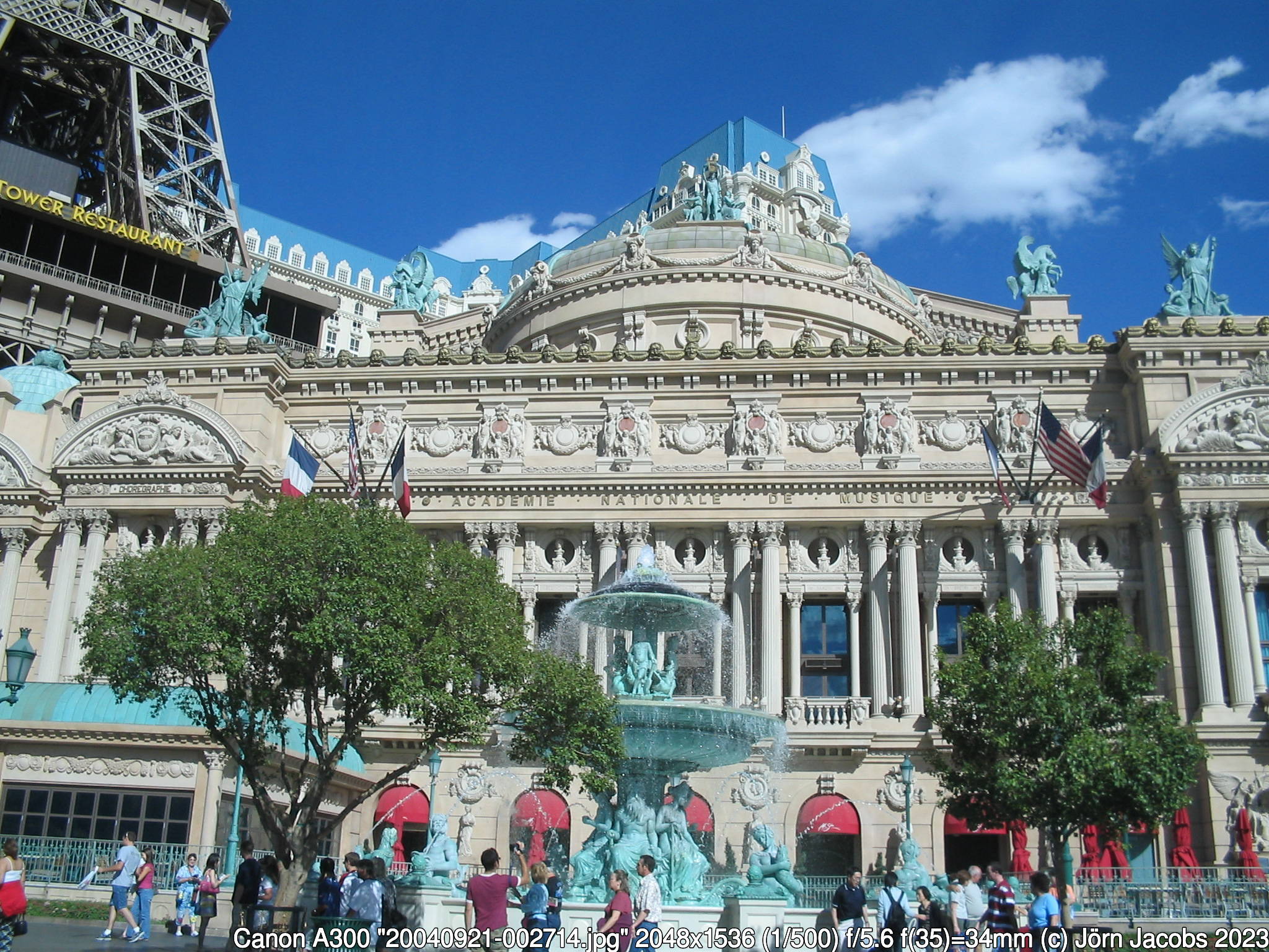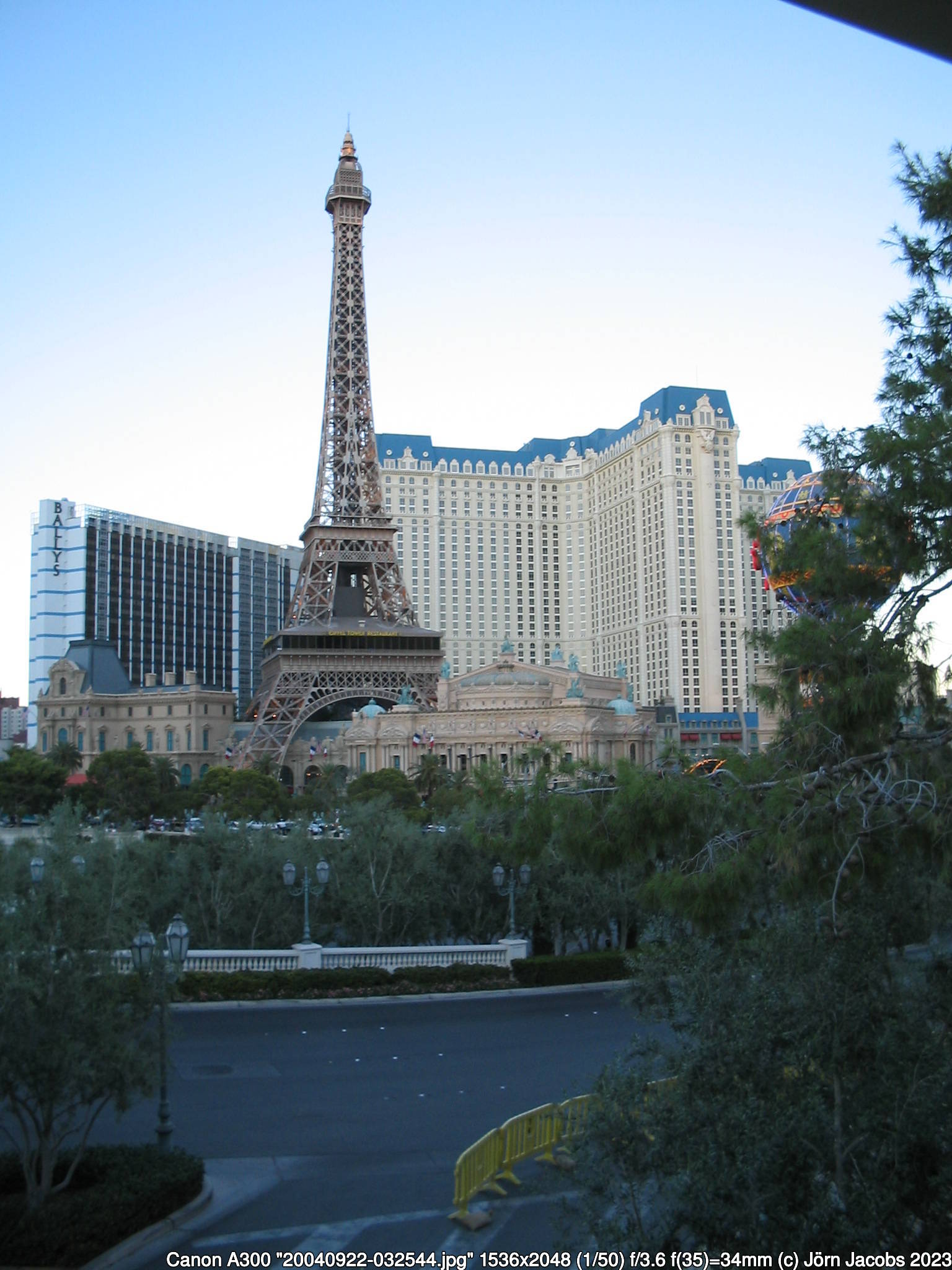Nanu, hier stimmen die Grössenverhältnisse aber nicht! Der Eiffelturm ist etwas zu klein geraten, das Hotel mit Spielbank im Hintergrund extrem dominierend. Der Wahrheit des Ganzen damit dann doch wieder ziemlich nah.