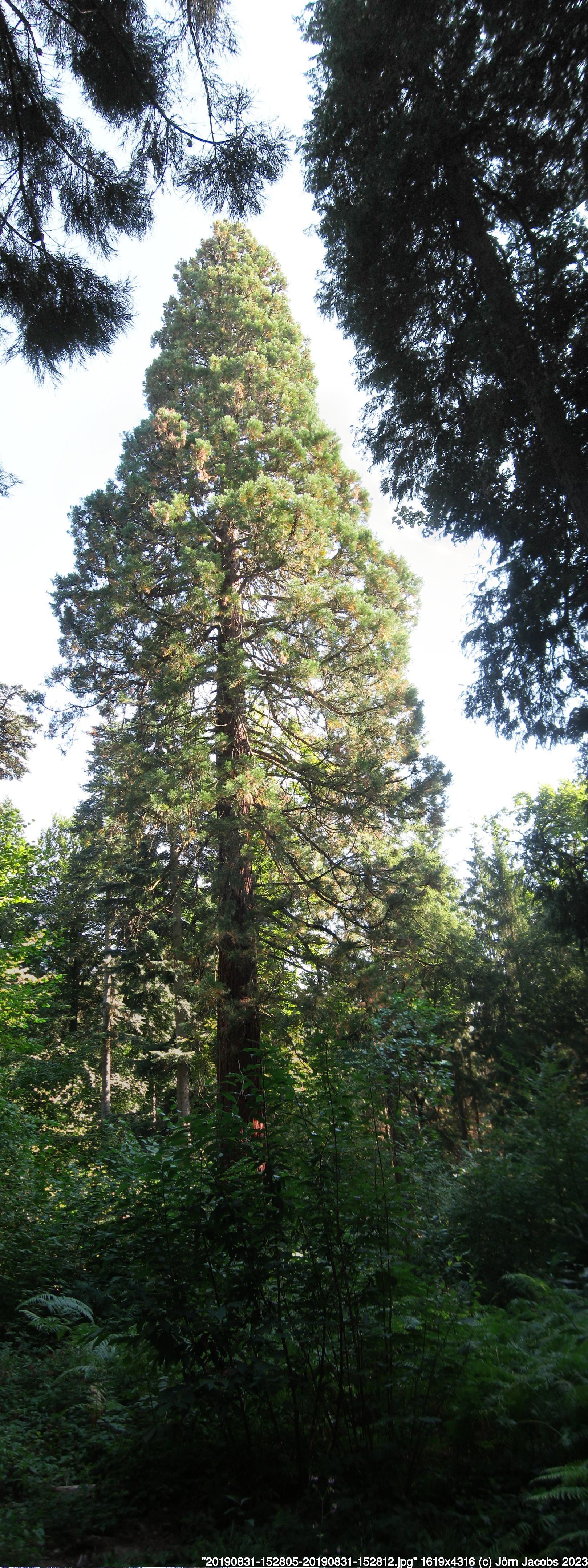 A12A propos Giganten: Wenn man für eine Gesamtaufnahme nicht weit genug zurücktreten kann, hilft nur eine Panoramaaufnahme, wie hier bei diesem Mammutbaum im Heidelberger Stadtwald, zusammengesetzt aus zwei Teilen.