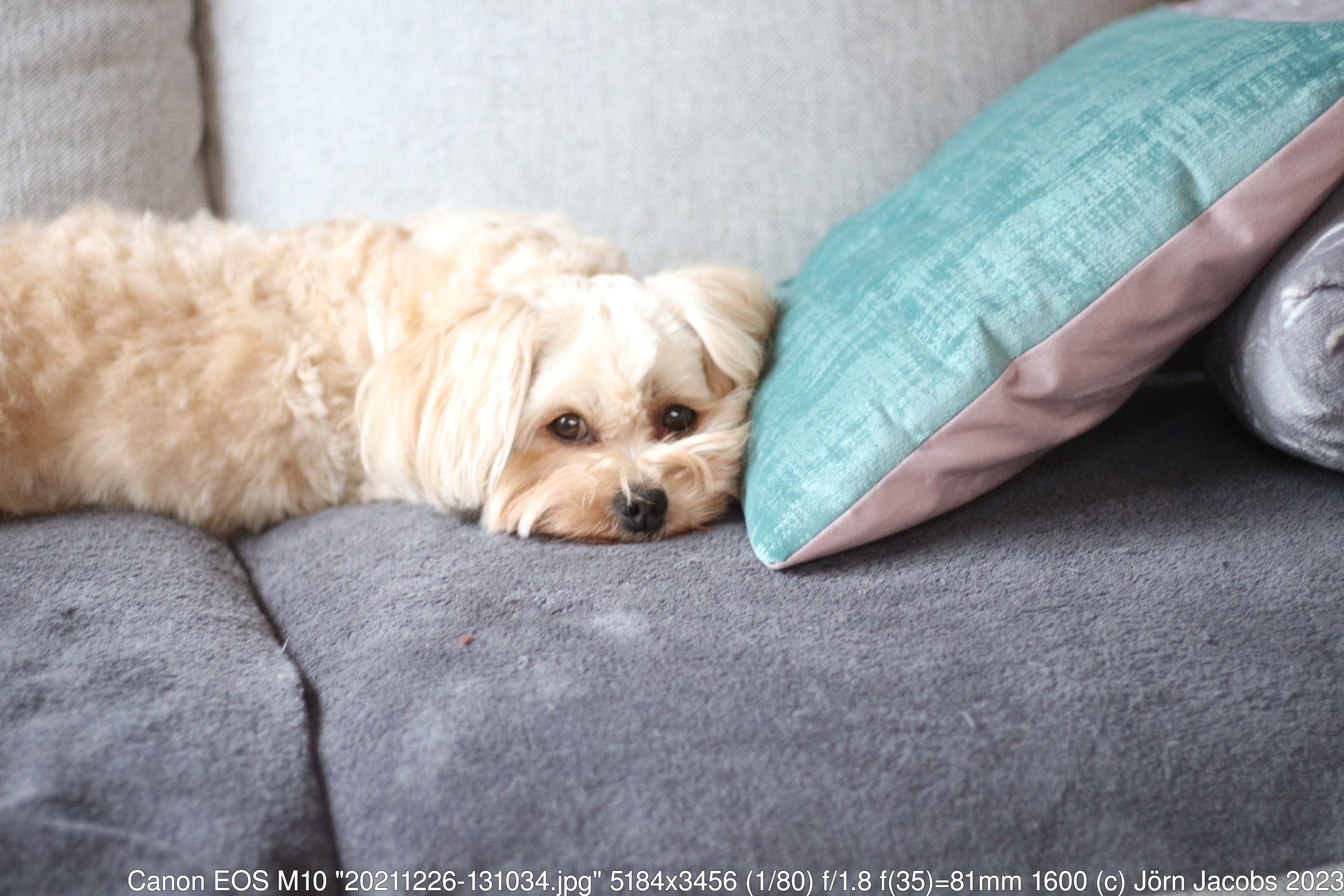 A39 Freihand-Tierportrait bei wenig Licht: Ideal ist ein Lichststarkes Objektiv und eine Kamera mit real benutzbaren hohen ISO-Werten : Canon EOS M10, Objektiv: Brw.: 50.0 mm Entf.: 0.87 m Blende: F/ 1.8 , VsZeit 1/40 s, Empf.: 5000 ISO