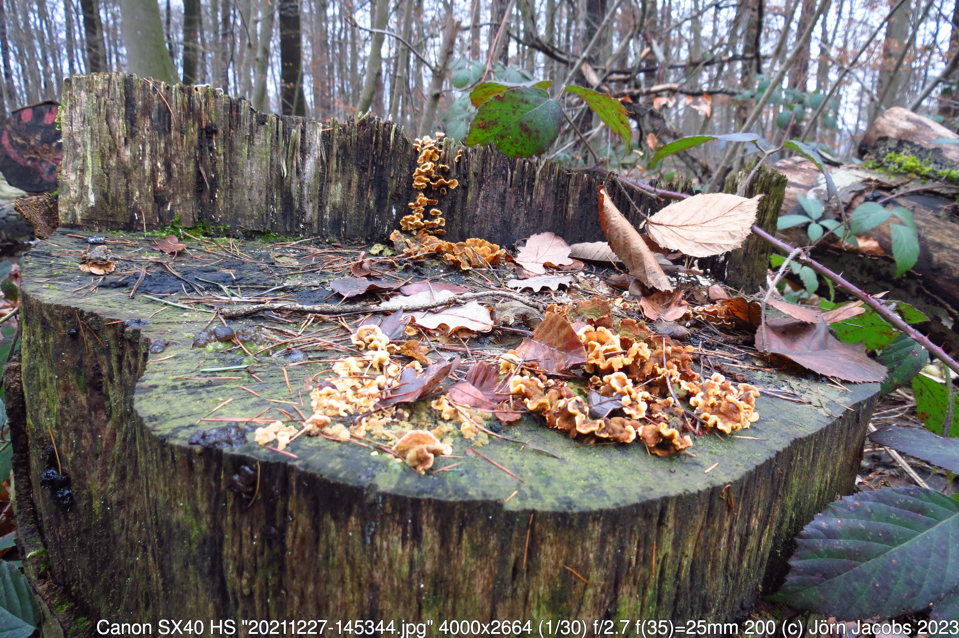Zoom-Einstellung (s.u.) "verbraucht" hier nicht so viel Lichtstärke, deswegen Qualität dieser Pilzmahlzeit noch akzeptabel. Kamera: Canon PowerShot SX40 HS, Objektiv: Brw.: 4.3 mm Entf.: 0.38 m Blende: F/ 2.7 , VsZeit 1/30 s, Empf.: 200 ISO