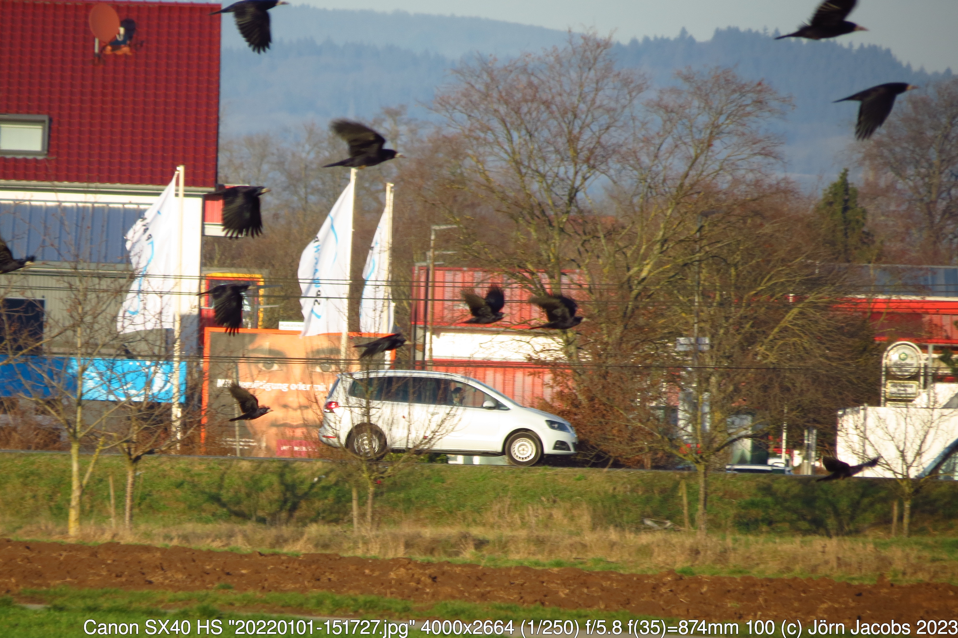 A59 Wettrennen zwischen Vogelschwarm und Autos? Kamera: Canon PowerShot SX40 HS, Objektiv: Brw.: 150.5 mm Entf.: 65.53 m Blende: F/ 5.8 , VsZeit 1/250 s, Empf.: 100 ISO